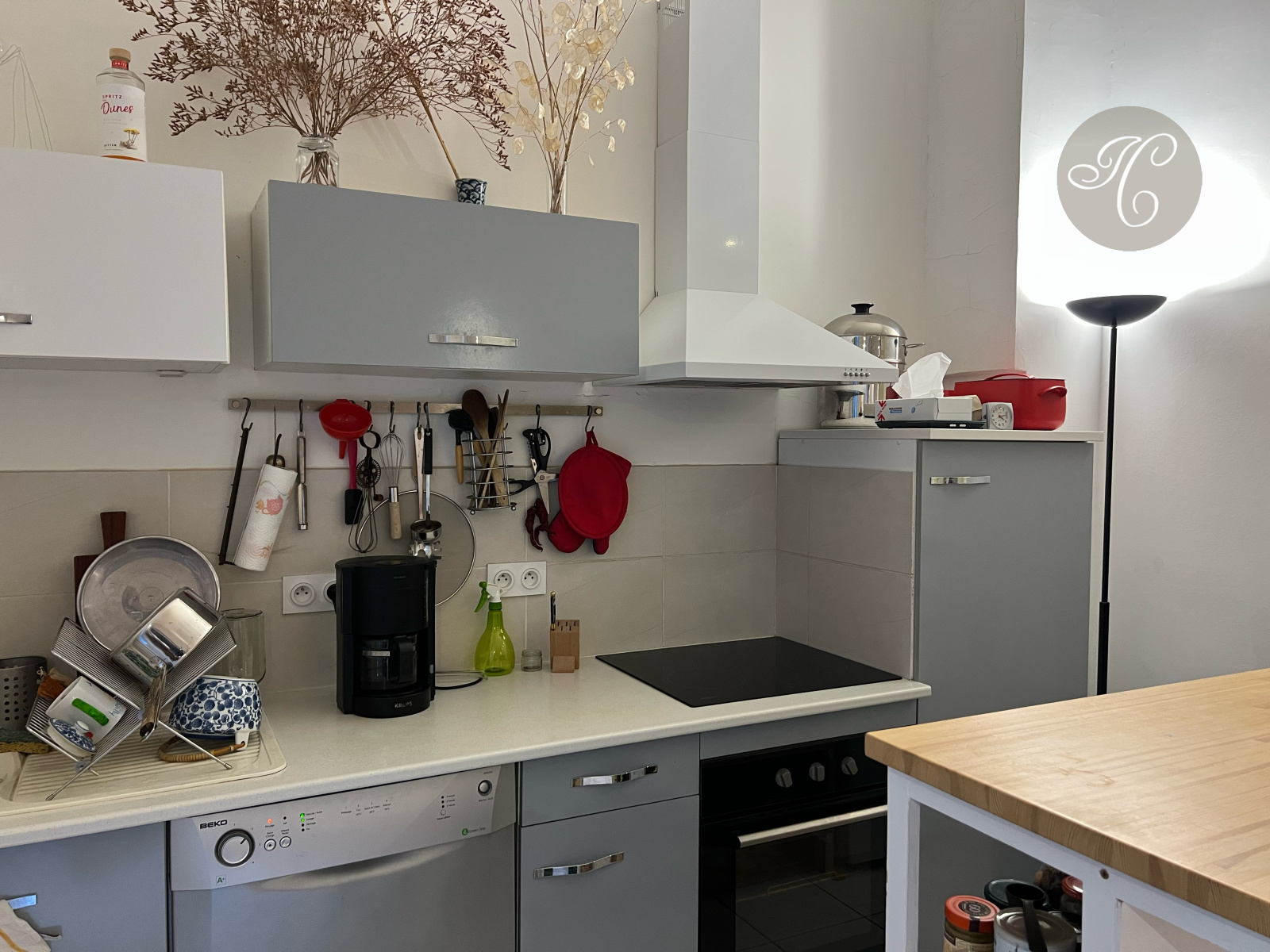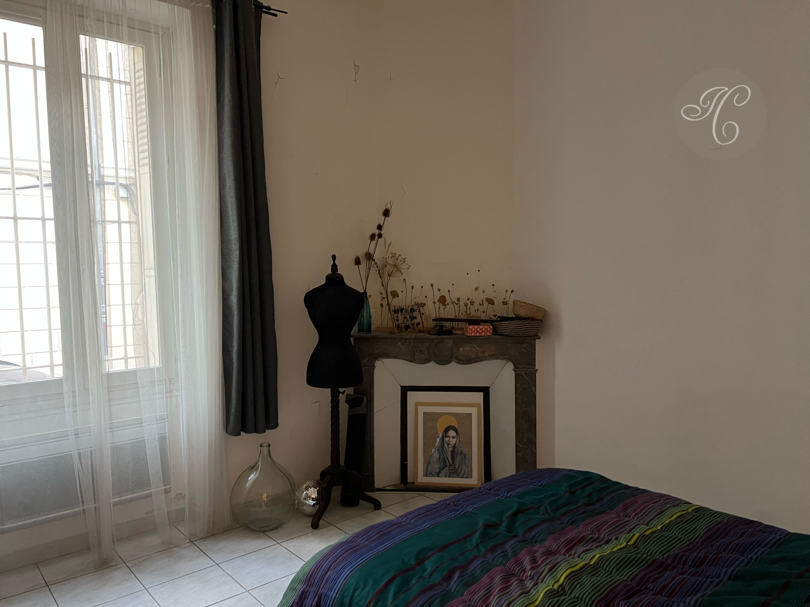 L'appartement se compose d'une belle pièce de vie avec cuisine américaine, l'ensemble ouvrant sur cour au calme, deux chambres spacieuses avec cheminées, une jolie salle d'eau et un cellier - Beaux éléments anciens -