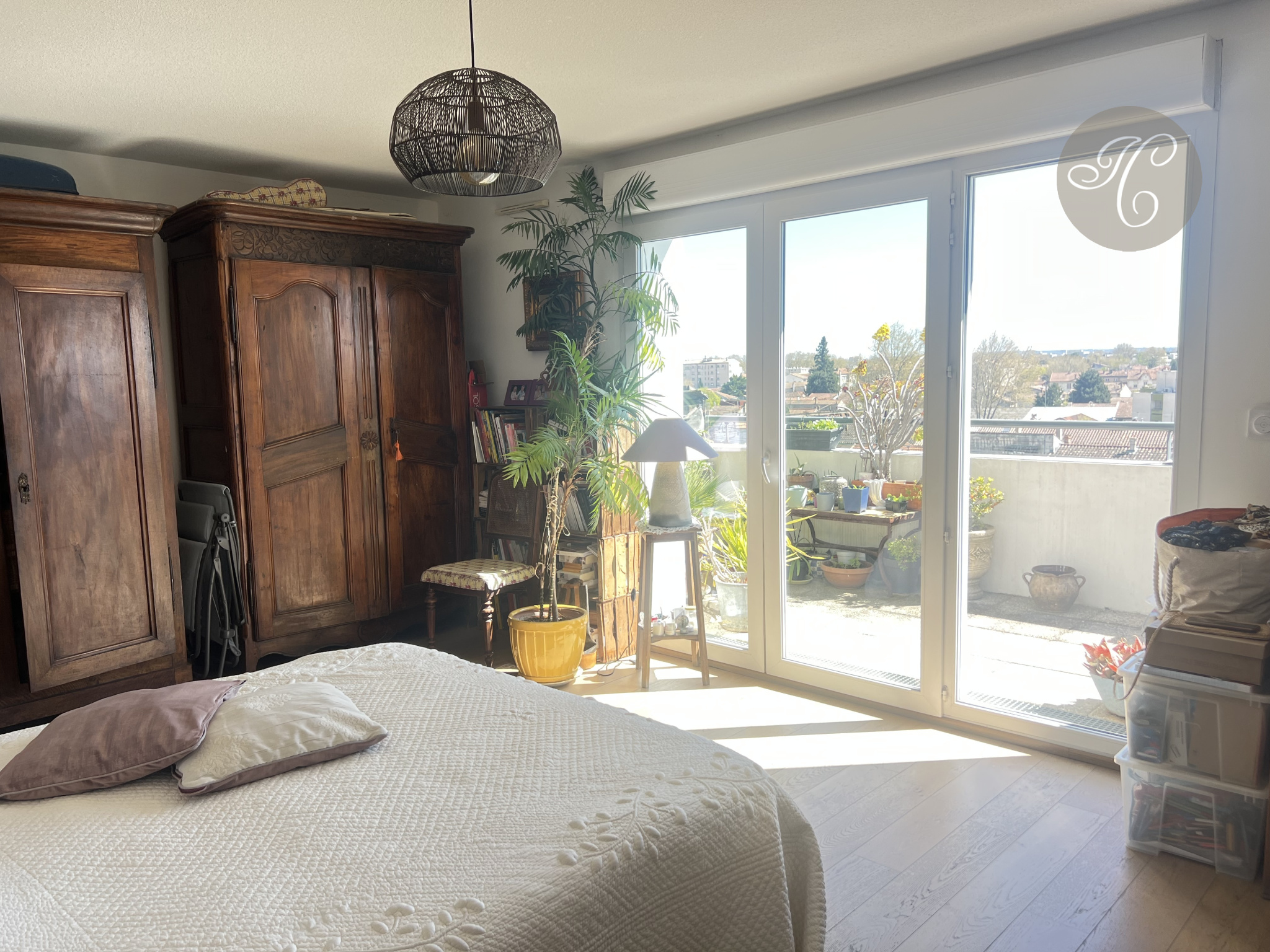 - Une belle chambre parentale de 23 m2 ouvrant sur la terrasse avec une vue dégagée - ainsi que 2 autres chambres, une salle de bains et un 2e wc.